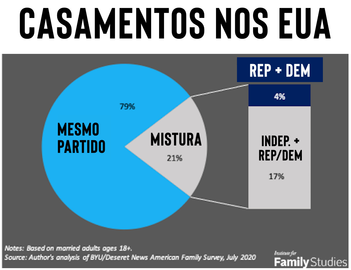 SÓ 4% dos CASAMENTOS nos EUA são ENTRE democratas e republicanos. Não tem mistura.