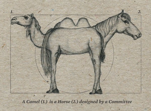 "Um cavalo é um camelo desenhado por um comitê" - ditado indiano.