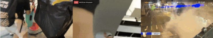 Granadas de gás lacrimogênio são contidas organizadamente com cones e água. Rajadas de lasers vindas da multidão nublam as miras do exército. Os protestantes criaram até uma linguagem de sinais própria para comunicar táticas em sigilo.
