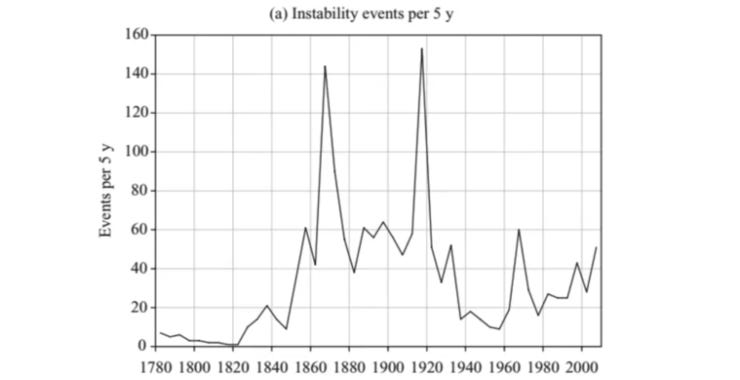 Peter Turchin é um proponente da teoria demográfica estrutural (SDT), que usa modelos estatísticos para descrever surtos de instabilidade em sistemas complexos.