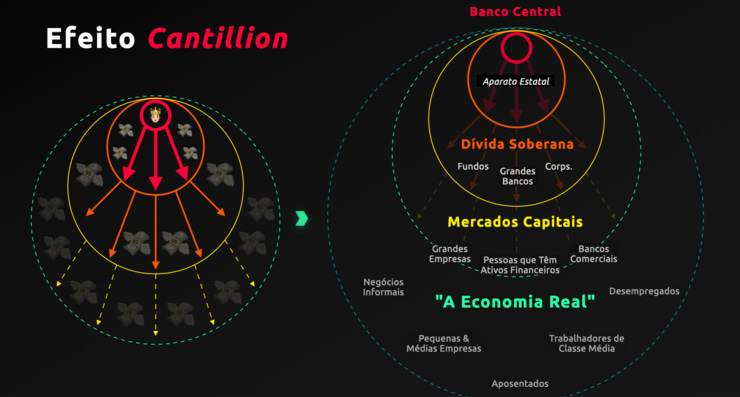 O fato de que o estoque de dinheiro é gerido por regras arbitrárias, e de que o próprio dinheiro compra as regras.