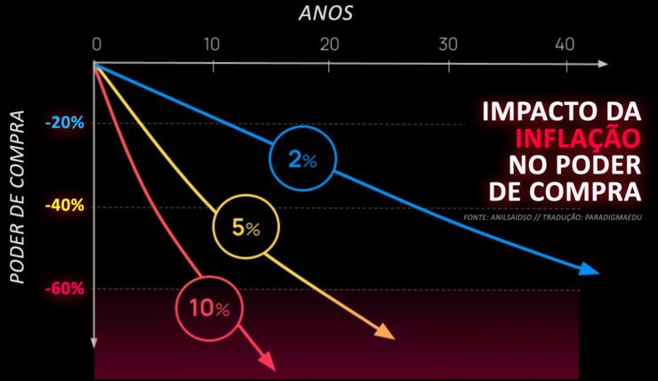 Aí as pessoas mais educadas buscam investimentos de risco. Pra driblar a perda inevitável do poder de compra do dinheiro.