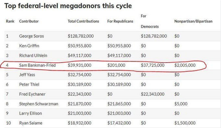 SBF foi o 2º maior doador da campanha do Biden, atrás do Bloomberg.